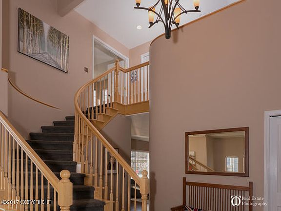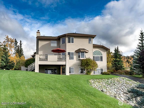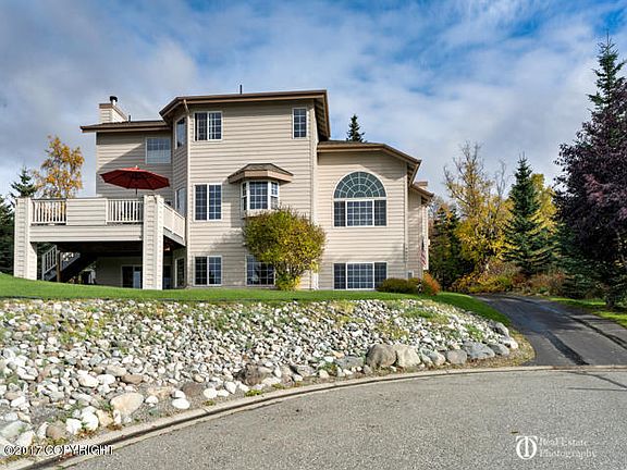 Unobstructed Cook Inlet & Mtn Views! Stunning Hagmier Home on a 1/2 Acre Lot Backing to Mature Trees, Designer KIT w/ Quartz Top, S/S Appls, Burma Teak Lam Flrs, Curved Staircase, Lrg Sunny Deck w/ Views, Main Level BR/BA, Formal and Informal Living & Dining Rms. Steam Shower & Heated Floors in Master! Full BSMT w/ BR & BA + Storage Rm. Culdesac Rd w/ Circular Drive. It Has It All & a GREAT Price