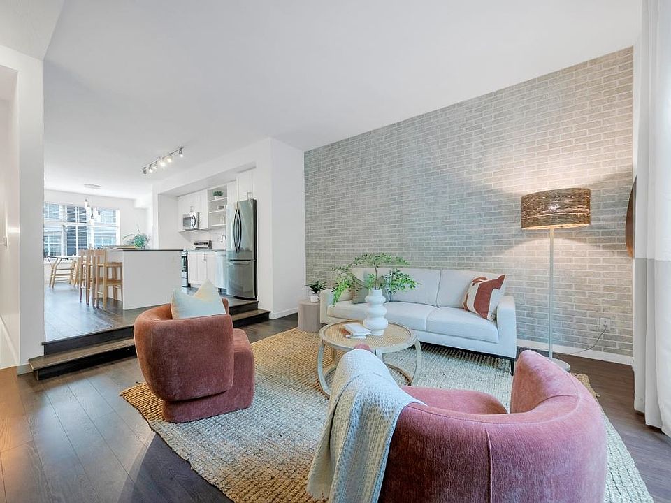 Welcome to Creekside! Freshly painted and move in ready. This 3 bedroom, 2 bathroom & Flex space home truly stands out. Gated rear yard & spacious main floor deck back onto dedicated green space for privacy & entertaining. Location is ideal with quick access to schools, parks & everyday shopping needs. Excellent commuter access to Fraser Hwy & future Skytrain. Whether you’re a professional couple or family this home blends comfort, convenience & lifestyle. Call for your private showing today!