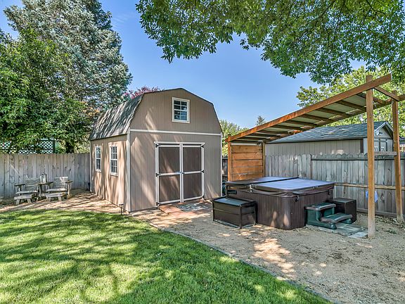 Located in a quiet East Medford neighborhood, this 1,766 sq ft home blends comfort and charm. Warm hardwood floors and expansive tinted windows frame the stunning & private backyard, where park-like landscaping and a majestic Black Oak tree with a swing create a serene centerpiece. Not to mention an insulated shop with commercial-grade flooring and mini-split HVAC! The spacious kitchen offers abundant storage, pantry w/pullouts, and opens to a generous dining area. The primary suite features a walk-in closet and private bath, complemented by two additional bedrooms and skylights. Outside, relax year-round in the 220V hot tub beneath a custom gazebo, unwind by the fire pit, or enjoy the shade of mature trees. Additional highlights include wide hallways with built-in storage, an oversized 2-car garage with workbench, leaf-filtered gutters, newer roof, in-ground sprinklers, and a home warranty for peace of mind. A truly inviting place to call home.