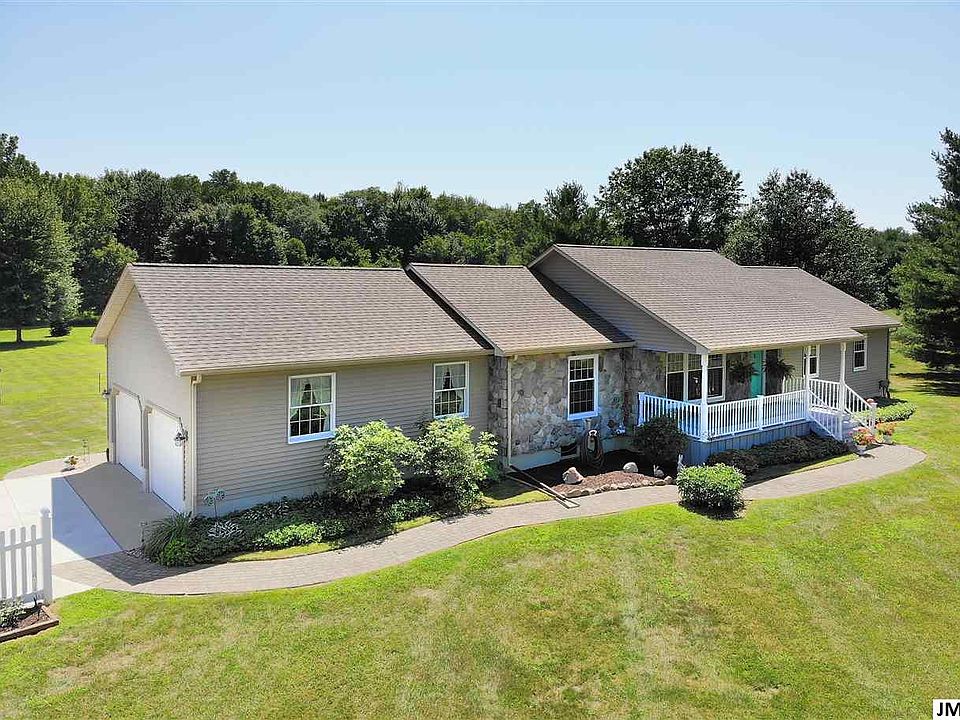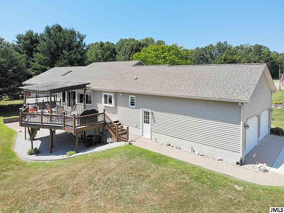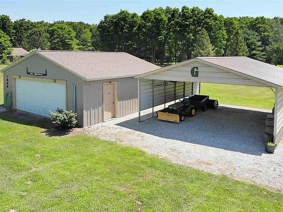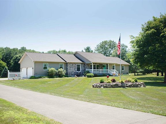 Pristine Ranch Home situated on 5.69 beautiful acres in Hanover Horton School District. This home and property has been meticulously cared for. The home offers 3BR/2.5BA, a finished walk-out lower level with family room and workshop. The main level of the home features open kitchen and dining, family room, and living room with cove ceilings. All bedrooms offer 2 closets in each! Includes a Large Pole Barn that offers electric, water & phone line and includes a 20x26 covered carport perfect for a RV storage. Updates include: New Central Air in 2016, New Concrete Pad Driveway in 2017, New Windows in 2014, New Roof & Skylight in 2017, New Roof & Steel Siding on Pole Barn in 2017. A large Deck off the family room is the perfect spot to watch all of the wildlife. Garage is drywalled and insulated and is spotless! 220 outlet for generator available. Septic was pumped in 2017.