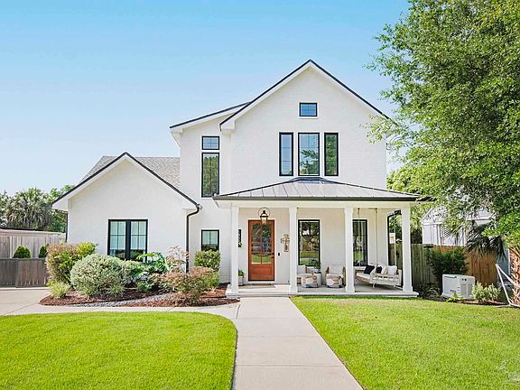 FACTS FIRST ~ Custom Built 2021 ~ Heart of East Hill ~ 2893 sq ft ~ Open Floor Plan ~ Covered Front Porch ~ 10’ Ceilings Down ~ Gas Fireplace ~ Large Dining Area ~ Gourmet Kitchen ~ Wolf Professional Dual Fuel Gas Range ~ Walk-In Pantry ~ Substantial Center Island ~ First Floor Primary Suite ~ 4’ x 7’ Walk-in Shower ~ Second Floor 9’ Ceilings ~ 2 Bedrooms ~ Jack & Jill Bath ~ Climate Controlled 6’ x 20’ Flex Space not Included in Sq Ftg ~ 3rd Floor Climate Controlled Walk up Attic/Creative Use ~ 12’ x 27’ Covered Back Porch ~ Low Maintenance Synthetic Turk Yard ~ Fire Pit ~ Outdoor Shower ~ 7 Person Caldera Saltwater Spa ~ Detached 23’ x 28’ Cottage Style Garage ~ Impact Rated Windows & Doors ~ Irrigation System ~ Tankless Gas Water Heater ~ 2 HVAC Units ~ Remote Controlled Driveway Gate ~ Camera Security System ~ BRAND NEW WHOLE HOUSE GENERATOR. Now for the FLUFF! Directly across from Zamora Park, this home was designed for comfort, style, and effortless entertaining. The chef’s kitchen is a true showpiece, boasting high-end stainless steel appliances, a Gas Range, appliance garage, pantry, wine cooler, and a large center island perfect for gathering. The luxurious first-floor primary suite offers custom Inspired Closet system and spa-inspired bath and extra walk in closet. Upstairs includes a versatile playroom/living area with built-in desks, laundry chute, two large bedrooms, and a Jack and Jill bath. Outside enjoy your private backyard oasis, highlighted by a covered patio, low-maintenance synthetic turf ~ perfect for lush green year-round enjoyment. This exceptional East Hill home combines timeless elegance with modern convenience, offering an unmatched lifestyle in one of Pensacola’s most sought-after neighborhoods.