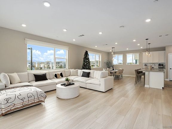 Welcome to the lifestyle-centric community of Millenia offering parks, promenades, shops, restaurants, local market, and so much more! ! Gorgeous 4 bed 3.5 bath CORNER tri-level rowhome with full bed and bath on first floor! Modern home with stylish interior, this home features Luxury vinyl plank flooring throughout, designer light fixtures, large open living space with tons of natural light. Upgraded kitchen with large island, crisp white cabinetry, quartz counters, marble back splash and GE stainless steel appliances. 3 bedrooms and 2 full baths on third floor, large primary suite with walk in closet, spa like en-suite bath with large soaking tub and dual vanity. Additional features include an in-unit washer/dryer, a 2-car attached garage providing additional storage space, and SOLAR for a low monthly electric bill. Resort style amenities include a sparkling pool, spa, and playgrounds. No matter where you live within this unique urban oasis you’re within easy distance to all that it has to offer. Across from Otay Ranch Town Center and close to Otay Lake and trails. Don’t miss out!