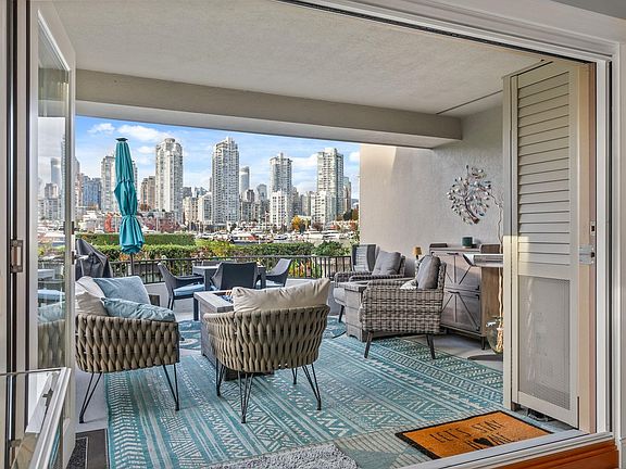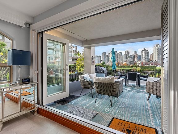 A stunning water view, waterfront condo that is set back from the False Creek Seawall giving privacy. This end unit has an expansive patio upfront with a garden to putter in alongside the whole length of the condo. Private entrance off the patio. A Walker’s Paradise…. A gourmet entertainer’s kitchen. A dining room area that will fit 8-10 people. All your friends will be coming over for a visit. AIR-CONDITIONING, GAS FIREPLACE, PET-FRIENDLY. One level, ground floor. Only one common wall with neighbour. Close to all the conveniences. Close to Granville Island, Olympic Village, VGH and the Canada Line Skytrain. Come live your best life!