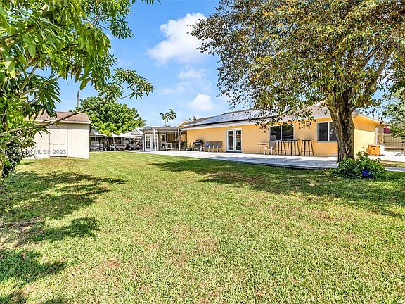 Pride Reduced!! This stunning 3-bed, 3-bath home sits on an impressive 15,468 Sq.Ft corner lot with over $200,000 in upgrades. The recently renovated interior features new granite flooring, a den that can convert to a fourth bedroom, and a second bedroom with side entry ideal for guests. The bathrooms have elegant tile on all walls. Impact windows and doors ensure safety while solar panels provide energy savings. The backyard is an oasis with fruit trees, space for a boat, RV, and pool, a large concrete patio, and a cul-de-sac for privacy. The property has an extra-large driveway, a converted garage, and no HOA. Enjoy luxurious living in your dream home!