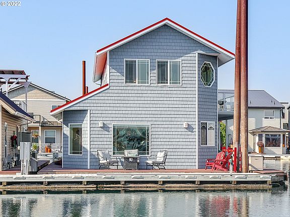 If you had the chance to live in a home that is not just a riverfront home, but that is a home literally on the water with its own boat lift, on the edge of The Columbia River Gorge, why would you pass that up? Views, a Hydro Hoist boat lift for a boat of up to approximately 26 feet, and easy access to the Columbia River Gorge are features of this one-of-a-kind floating home in a wonderful part of the world. Paddling to McGuire Island and Government Island are quick trips, as is a boat ride east to the Gorge. When you return from your adventures, accessing the laundry room through the door next to the boat lift makes it convenient to enter the house without tracking sand or water into the rest of the house.There is a combination of deck and balcony space on three sides of this floating oasis. High ceilings, many windows, kitchen with island and dining area, living room , bedroom and full bath on 1st floor. Upstairs, is a huge primary suite with a large bathroom, a soaking tub, walk-in closet, and an additional room that could serve as a nursery or home office. The float rated a 5 in December, 2020 which would make it eligible for financing.