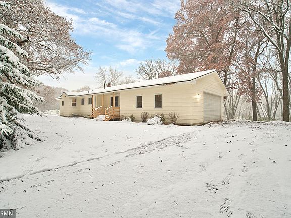 Privacy awaits! 3BR, 2BA Walkout Rambler on 1.67 acres. 4th bedroom is non-conforming. Lower level ready to be completed for the next buyer to build equity and more square footage. Attached, insulated and heated 2 car garage. Located off a private cul-de-sac just minutes from town. 3 bedrooms on 1 level, galley kitchen with 2 main level living rooms. Hardwood floors. Wood stove in LL not in use/never used by sellers Gas fireplace. 2nd Kitchen in LL. Outdoor shed and lots of wildlife with gentle flowing creek in the backyard. Conveniently located near shopping, walking trails, the Rum River and Legacy Park.