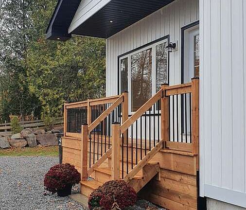For more info on this property, please click the Brochure button. Tucked away on a peaceful cul-de-sac, this brand-new 2 bedroom, 2 bath home with a private office blends timeless finishes with modern convenience. Spanning 1,100 square feet, this thoughtfully designed abode features high ceilings and bright interior with rich hardwood floors, spa-inspired tile bathrooms, and an open layout ideal for both entertaining and everyday living. The dedicated office is the perfect space for remote work or creative pursuits, while the full height basement provides opportunity for ample storage, workshop, or in law suite potential with bonus plumbing and separate entrance! Relax and enjoy the efficient heat pump with gas furnace and central A/C, ensuring year-round comfort. On the outside, take advantage of ample parking, abundant open space with mature trees and many local amenities. Enjoy quick access to Highway 400, the Tay Trail, marinas, snowmobile routes, and your new favorite fishing hole all a stones throw from your front porch!