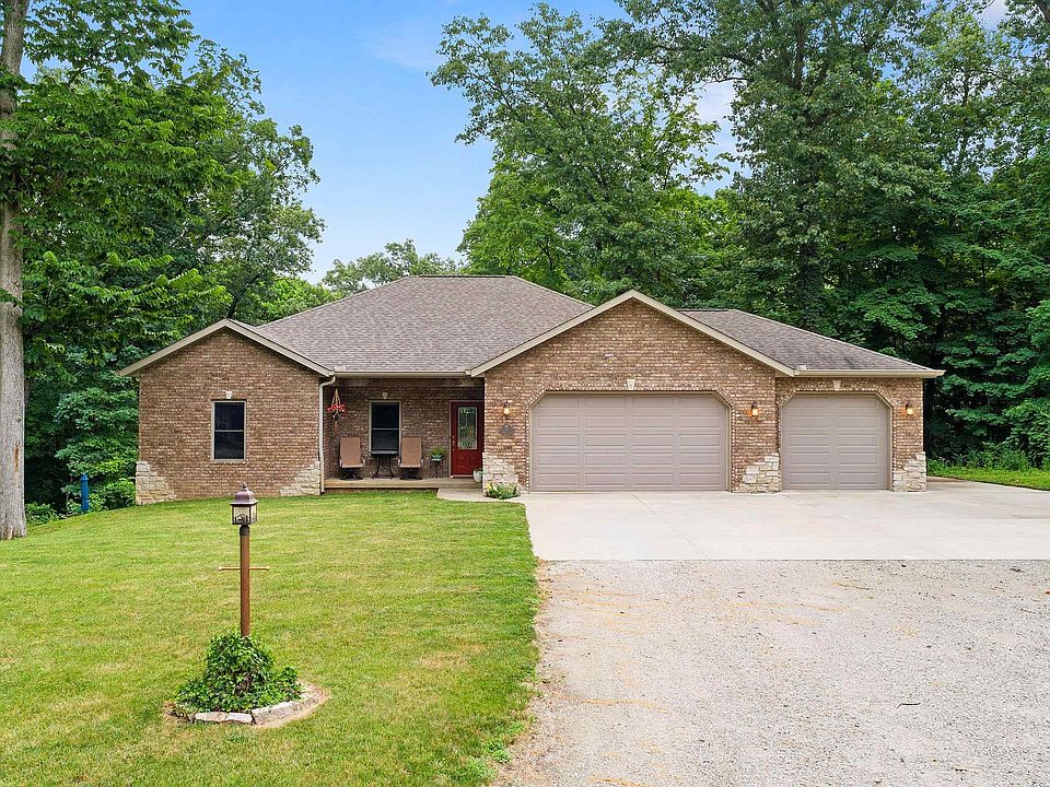 Are you looking for a Picturesque, Quiet, Peaceful, and Private Setting for your next home? Custom Built Ranch Style Home Situated on 27 wooded acres. Open Floor Plan w/ vaulted ceiling with beautiful views. Split bedroom design. Solid oak & granite fireplace surround, 6 panel oak doors w/ oak trim. Main Floor Laundry w/ utility sink. Fully applianced kitchen w/ under cabinet lighting & pull out spice drawer. 2 Pantries. Hickory hardwood floors on main level. Recently Finished Walkout Basement w/ Large Rec Room and Daylight Windows w/ walkout to Patio. Extra Large Built-in Gun Safe. Gym Room, Central Vac, Energy efficient Trane XV95 Dual Furnace, Large Heated garage w/ utility sink. Shared Drive, Concrete pad for dog kennel. Walking path in woods. Just a Few Minute Drive to Germantown Hills. Wood burner in the basement reserved.