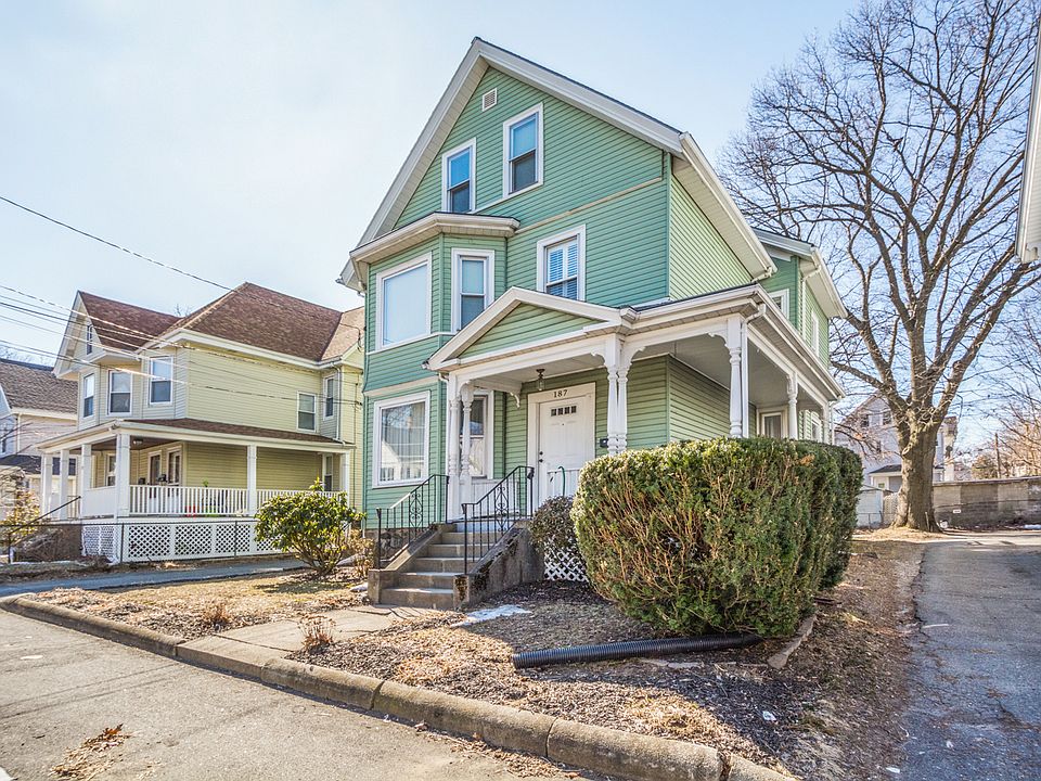 Spacious, gracious, elegant 2-level condo in the bustling Moody Street neighborhood. The main floor includes a gracious living room, formal dining, kitchen, private office, and guest bedroom. Enjoy BBQ or coffee on a spacious deck overlooking trees/grass in the back yard. The upper floor features 2 more large bedrooms, and a full bath with tiled shower. Off street parking. Storage space in a large attic area, and also in the building basement. SHOWINGS START FRIDAY 3/29.