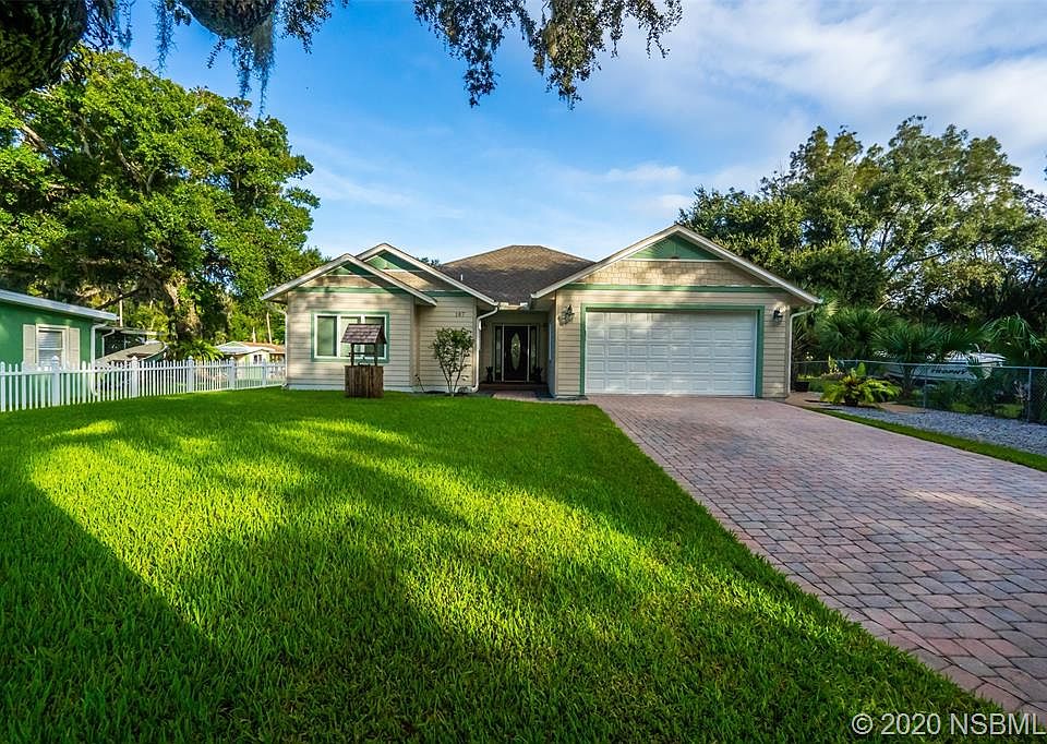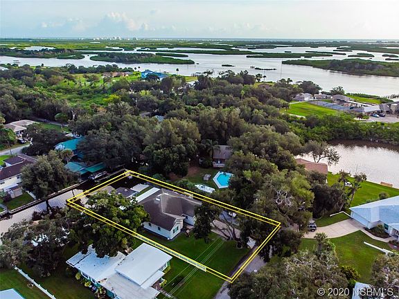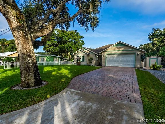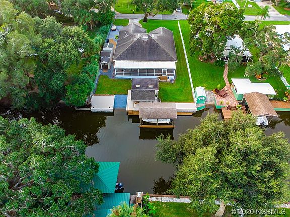 EXTRAORDINARY custom built, one-owner, boaters' dream, waterfront home in the highly sought-after Waterway Park neighborhood! This beautiful 3BR/2BA 1816 Sq ft. home is located on a deep-water canal with the Intracoastal Waterway only 1-2 minutes away by boat of your choice. As you approach this home, you will find a beautiful white picket fence, manicured lawn and attractive paver driveway and walkway. There is a 4-zone sprinkler system with programmable controls for maintenance of this pristine lawn. The property has a large pavilion with fans and wired electric for entertaining friends and family. In addition, a boat ramp, boat dock, boathouse, and powered boat lift (3500 lb. capacity) are located on the canal for boating and fishing enthusiasts. This stunning home has Hardie Board concrete siding and composite trim, stem wall foundation, R19 insulation rating, Andersen (full opening) casement hurricane impact windows and storm panels are provided where required. Ample parking for your RV or other vehicles with access to 120V - 30amp outlet. Two storage sheds with electric, plus a riding lawn mower shed. Breathtaking interior open plan with teak wood floors in the main areas, nine-foot ceilings, six-inch baseboards, crown molding throughout, custom hardware, and silhouette custom window shades. The chef's dream kitchen has a beautiful travertine floor, granite countertops, stainless steel appliances. Cook like a professional chef on your propane gas range! Extra-large master bedroom and walk-in closet with wall to wall carpet. Walk through your French doors leading to the 50' wide screened back porch where you can enjoy your morning coffee and picturesque view. Also, this home has two additional generous sized bedrooms and closets. So many spectacular extras included in this waterfront home; there are too many to list! Short drive to New Smyrna Beach, Flagler Ave shops, dining, and 8 miles to I-95. This home is Florida Life living at its finest! A MUST SEE home!