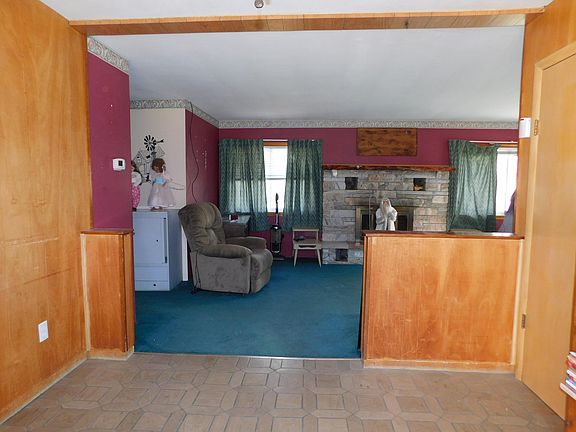 Ready for new family to move right in. Check out this ranch style brick home on 7.5 acres. Was 3 bedroom, now 2 as original bath turned into an office and 3rd bedroom turned into full bath with walk in shower, laundry and big storage area. Could change back or add egress window to lower level if another bedroom is needed. Living room has wood burning fireplace and lots of natural light. Garage is attached to home via breezeway for boots and coats and a storage room. Enter home to foyer with half bath on one side, entry to lower level straight ahead and kitchen to rear. Dining sliders exit to peaceful back yard and brand new huge deck with a ramp. Basement is unfinished with a hot tub room, mechanicals area and pellet stove. Bilco doors outside but no steps. Large outbuilding with workshop in back has cement and dirt floor plus a steel roof.