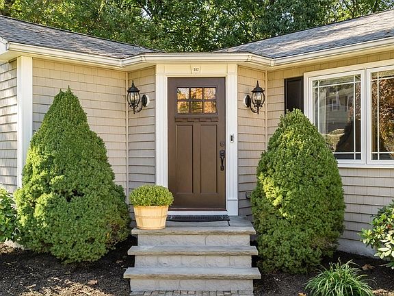 Luxurious and spacious 4+ bed, 2 full and 2 half bath gut-renovated ranch, located in one of Waltham’s finest neighborhoods; Glenmeadow West! Primary suite features vaulted ceiling, skylit jacuzzi bath and walk-in closet. Granite eat-in kitchen with vaulted ceiling, skylights, stainless steel appliances, gas cooking, wine cooler and ample counter space ideal for entertaining! 3-bedroom wing with skylit full bath has French doors allowing separation from the rest of the home. Fireplaced family, living room with DUAL sliders to sprawling 30’ rear deck and patio firepit area, and half bath rounds out this impeccably designed main level. Finished basement features a private office, recreation room, 2016 half bath, laundry room, unfinished storage and 2-car garage. Additional features include central air and 5-zone gas heating. Level fenced back yard abuts conservation land. Located just 60 seconds to Rte. 128, from there a short drive to Rte. 2 and I-90. All newer schools and parks nearby.