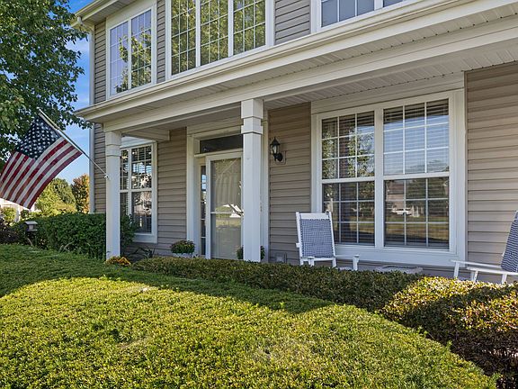 Set on a landscaped lot in Sugar Grove's sought-after Windsor Pointe neighborhood, this beautifully maintained end-unit townhome offers comfort and convenience in a modern, light-filled design. The 2-bedroom, 2.5-bath layout includes an inviting front porch, a private backyard patio, and a 2-car attached garage. Inside, vaulted and two-story ceilings create an airy feel throughout the open-concept living areas. The living room features a corner gas-log fireplace and abundant natural light, while the eat-in kitchen showcases stainless steel appliances, under-cabinet lighting, and a bright breakfast room with slider access to the patio. The main-floor primary suite includes a private bath with double bowl vanity, soaking tub, and separate shower, along with a convenient first-floor laundry and powder room. Upstairs, a spacious loft overlooks the living room and leads to a second bedroom and full bath-perfect for guests or a home office setup. Updates include newer HVAC and water heater, and the HOA covers exterior maintenance, lawn care, and snow removal for effortless living. Located in the acclaimed Kaneland school district, this home offers easy access to local parks, shopping, and I-88. Garage refrigerator included.