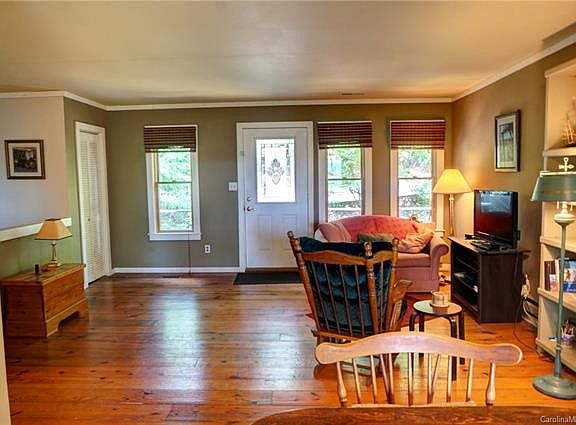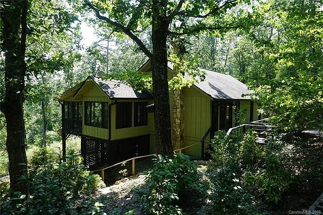 A comfortable cottage with big winter views, and year-round views of the hills and Lake Lanier, located on 1.3 acres including two adjoining lots added for buffer and privacy. Enjoy quiet Caledonia Street, conveniently close to both Tryon and Landrum. Boat and swim on Lake Lanier with access to the private boat ramp on W. Lakeshore Drive, or sit on your large screened porch and watch others skiing in the first basin. Second screened porch downstairs. Workshop/yard storage shop included, as are rows of blueberry plants now ready for summer harvest. Plenty of room to add a garage in driveway pull-off area.