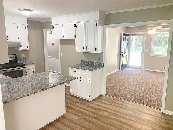 Great country location on this 2 bedroom, 1.5 bath newly remodeled home. One level living with a spacious living room, eat-in kitchen and a sunroom. Extra large master suite with a half bath and 2 closets. All new roof, paint, flooring, granite, stainless appliances and deck. Detached carport and unfinished basement perfect for storage or a workshop. .60 acre lot with plenty of privacy. Nice house and location and priced at $128,900 this one shouldn't last long so make your appointment today. 100% financing available!