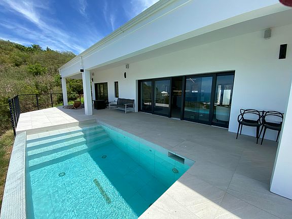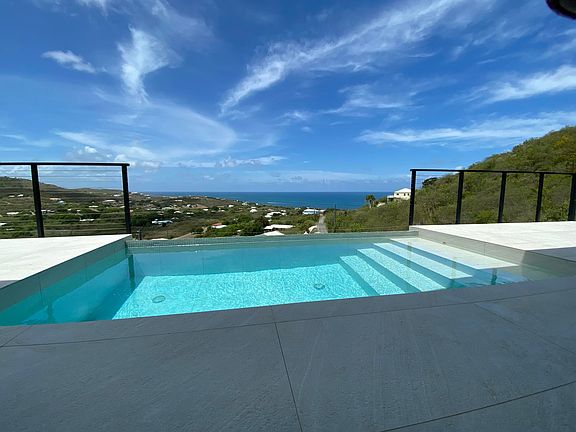 Modern, spacious, all- poured concrete home with outstanding view to the north encompassing Buck Island Beach west to Green Cay and more. Interior has open rafter ceilings, with tall 8 ft doors. All hurricane rated windows and doors, completely Solar and off the grid, gorgeous open kitchen with large island. Three bedrooms and three baths. Main bathroom has private, open-to-the sky shower. The covered gallery is generous with all-around sound and an infinity edge pool. Concrete driveway and a massive storage area completely concreted under the house.* for Comps only*
