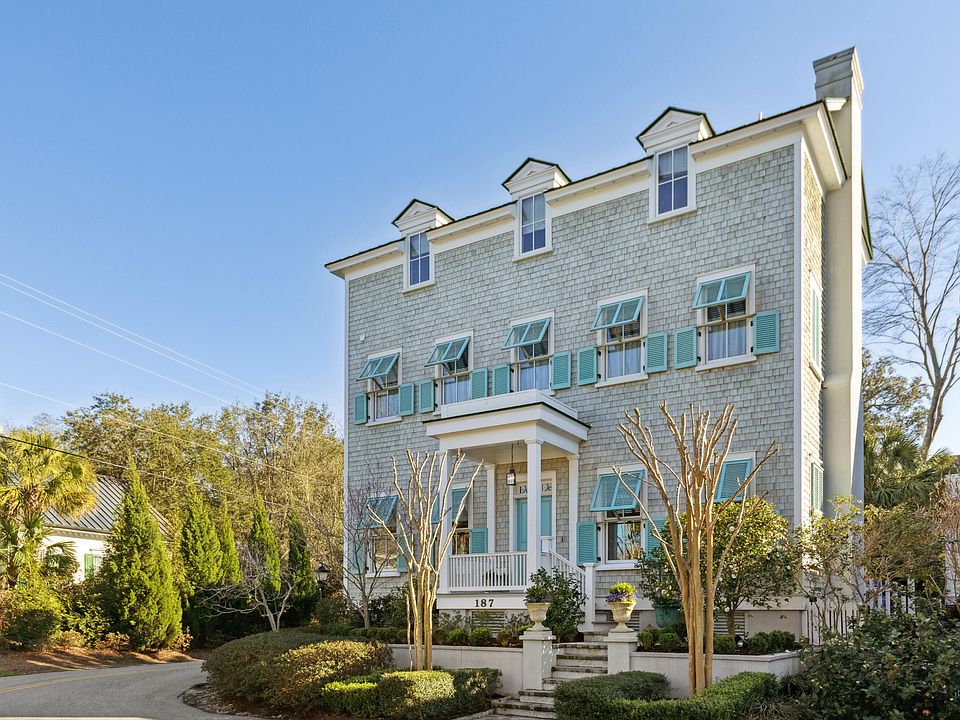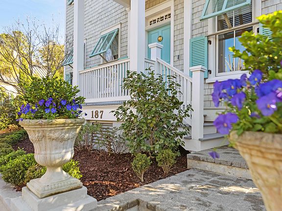 $180K price reduction in I'On! 187 E Shipyard Road is designed for easy living with entertaining areas that blend indoor spaces and beautiful gardens. This gorgeous home was formerly the compound of I'On's developer making it a truly unique offering. It encompasses a three-to-four-bedroom main house, a two-story guest house and 734 sq. ft. of welcoming porches. Lush tropical landscaping complete with a pond, fountain and winding paths mix naturally with the Nantucket style cedar shake exterior, Bermuda shutters and Southern double stacked porches. Inside, the kitchen is a must see with beautiful soapstone countertops, a French-made Lacanche three-burner gas range, custom cabinetry and hardware and glass-fronted cabinets with interior lighting. The Sub-Zero refrigerator with a slide-out freezer drawer blends in with matching cabinet panels. This is a favorite gathering place with space for a large farmhouse-style table. The family room has a gas fireplace and a mantel adorned with crushed shells, giving the feel of an authentic beach cottage. True to the cottage tradition, every inch of space is used efficiently with carved out crannies for books and a powder room tucked beneath the stairs. On the second level there are two bedrooms each with their own baths. The third floor has two spacious rooms and a large bath with a marble topped double vanity. The current owner uses both wings of this floor to reflect a generous primary suite. On the first two levels, French doors across the back of the home lead onto the porches overlooking the garden. The proximity of a nearby lake has the effect of cooling these spaces in summer and warming them in winter, making it comfortable throughout the year. There is a gas line already in place for an outdoor grill. Over the two-car detached garage you'll find a two-level guest house. It features hardwood floors, a cozy living room and a porch. The kitchen is equipped with a dishwasher, a small cooktop, toaster oven and a half-size refrigerator and freezer. Upstairs you'll find the bedroom and bathroom. Located just steps from the lake, this home offers privacy yet easy access to all the amenities, including the I'On Club with pool, tennis and pickleball as well as the neighborhood's walking trails, boat launch, restaurants and shops.