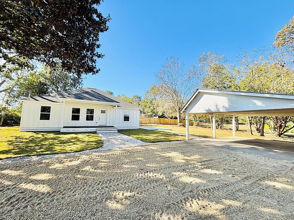 Serenity abounds in the custom 3 bedroom 2 bath farmhouse surrounded by woods and 100 yr old oak trees. Open floor plan with HUGE white island and white shaker cabinets, along with farmhouse sink. Spacious laundry area with custom shelving. Trey ceilings in living area and master bedroom, along with custom walk-in closet in master. Large side patio on right side of home along with detached 2 car carport. Very private and located in PRC school district.
