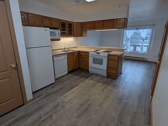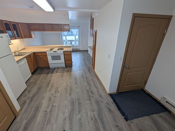 This unfurnished 2-bedroom, 1 bath townhouse style apartment overlooks downtown Juneau. It has a covered carport and is in walking distance of downtown and City/State/Fed offices. The master bedroom's sliding glass doors exit onto a balcony with great view of the city and channel. The bright kitchen has nice appliances and bar that adjoins the living room. Large windows provide lots of light. New vinyl plank flooring installed throughout. Stacked washer/dryer in unit. Rent Includes: Water/sewer/garbage/snow removal. Tenant Responsibility: Electric, cable/internet (optional). Security deposit required. Looking for a long term tenant.