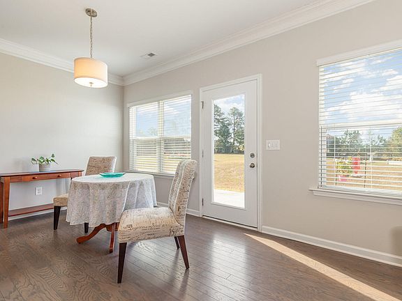 You will FALL in love with this home. Beautiful 3BR/3BA home on a spacious .74-acre lot! This move-in ready ranch offers a bright open floor plan with wide hallways and doors, some fresh new windows, vaulted ceilings and a cozy gas log fireplace. The kitchen includes ample cabinetry, generous counter space, and a sunny breakfast nook, while the formal dining room (or flex space) features crown molding and wainscoting. The large primary suite boasts a walk-in closet and spa-like bath with soaking tub, dual vanities, and separate shower. Two additional bedrooms each have their own bath access, perfect for family or guests. Enjoy outdoor living with a rocking chair front porch, back patio, and huge backyard with endless possibilities. Two-car garage and great location close to town, shopping, and dining. A must see!