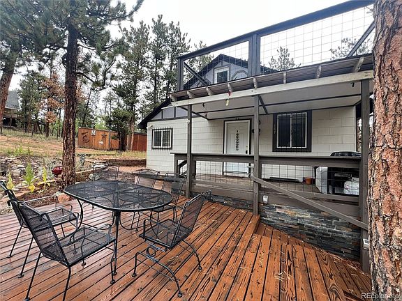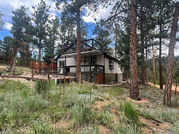 Welcome to 187 Johnson Road, a true mountain retreat peacefully situated in the Harris Park subdivision in Bailey, Colorado. Nestled among the pines and surrounded by fresh alpine air, this home offers the perfect blend of rustic charm and peaceful seclusion. This 2 bedroom, 1 bathroom home has AMAZING bonus space including finished attic space perfect for an office or more sleeping space as well as a closed in sunroom/porch just off the kitchen perfect for dining or cozying up with your favorite book. Whether you're sipping coffee on the deck with snowcapped mountain views, watching wildlife wander by, or exploring nearby trails, this is mountain living at its finest. Embrace a slower pace, star-filled nights, and the lifestyle only the Colorado Rockies can offer—all just a quick scenic drive from Denver.