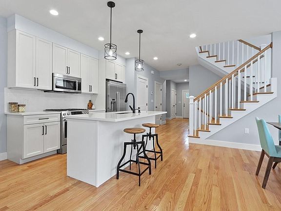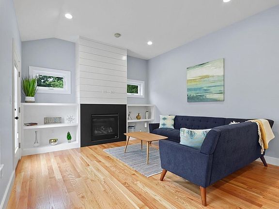 Welcome home to this contemporary, new construction townhouse in the highly desirable village of Newtonville. Upon entering, you're greeted with a large foyer which includes a custom bench and cubbies. This space flows seamlessly into an open concept living area, perfectly suited for today's modern lifestyle. The kitchen features white shaker cabinets, stainless steel appliances and a pantry. The adjacent dining area has windows on two sides which create a bright, airy feel. The focal point of the living room is the gas fireplace, adorned with custom built-ins and wrapped in shiplap which extends upwards to the cathedral ceiling. A french door provides access to a spacious patio, perfect for a BBQ! On the second level, the master suite has a generously sized closet and en suite bath with sleek matte black fixtures. Conveniently located near parks, shops and just 1 mile to the commuter rail.