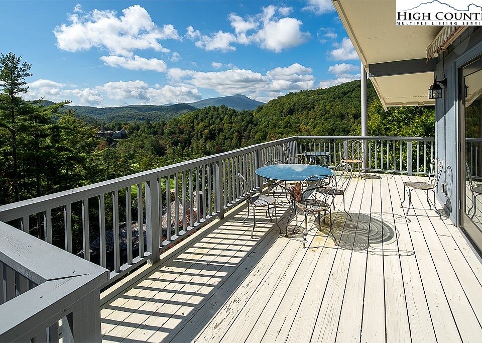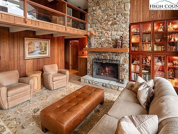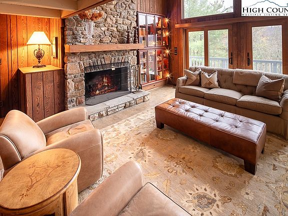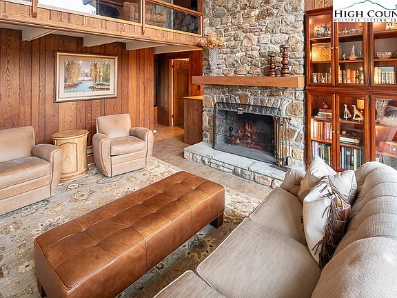 Views of Grandfather profile and Hound Ears golf course. This home features high cathedral ceiling, wormy chestnut paneling and large stone wood burning fireplace. One bedroom and bath are located on the main floor, two additional bedrooms and baths on lower level along with a bonus room which could be used as an additional sleeping or game room. Nice sized loft could be used as an office space or reading area. Outside features two large decks accessible from each level, golf cart storage, car port and plenty of parking for guests. All nestled on an oversized parcel with room to expand if desired. Hound Ears Club is a gated community centrally located between Blowing Rock, Boone and Banner Elk, Location!! Memberships are separate for purchase and include fine/casual dining, golf, tennis, pickle ball, swimming pool with rock waterfall grill onsite with drinks and dining options, fitness center. As a Homeowner enjoy hiking trails, community garden, Grover's Dog Park, Watauga River access, picnic & park to sit and enjoy the sounds of the rushing river.