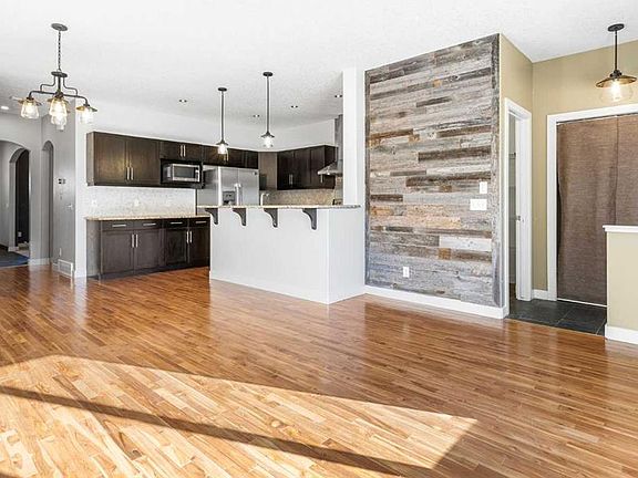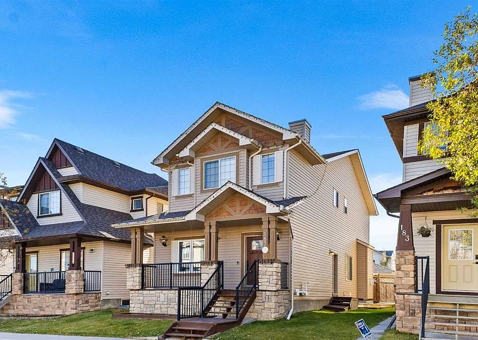 Nestled in the heart of Airdrie’s vibrant Bayside community, this home offers over 1900 sq ft of living space and 4 bedrooms above grade that blend comfort, functionality, and charm. The addition of a self contained illegal 2 bedroom basement suite provides an ideal space for guests, or as a potential mortgage helper. From the moment you arrive, the inviting front porch sets the tone for a property designed with both family living and entertaining in mind. Step inside and you are greeted by a warm, open floor plan where natural light pours across hardwood and slate floors. The main level offers a seamless flow between the living spaces, including a welcoming family room anchored by a cozy gas fireplace, a bright dining area perfect for gathering, and a thoughtfully designed kitchen with granite countertops, a breakfast bar, ample cabinetry plus a convenient walk-in pantry. A formal living room at the front of the home provides an elegant space for entertaining guests or enjoying quiet moments away from the bustle of daily life. Subtle rustic touches, including the character of sliding barn doors, add a sense of warmth and personality that makes the home feel both stylish and timeless. For added convenience, the main floor also features its own laundry area and a 2 piece powder room, making day to day living that much easier. Upstairs, the home continues to impress with four generously sized bedrooms, including a primary retreat complete with a walk in closet and a private 4 piece ensuite with relaxing freestanding soaker tub & separate shower. The additional bedrooms provide flexibility for children, guests, or even a home office, while a full bathroom ensures convenience for the entire family. The lower level is a standout feature, offering a self contained illegal two bedroom suite with its own kitchen, living and dining area, full bathroom, and private laundry. This space provides excellent potential for extended family, long term guests, or additional income opportunities, all while maintaining privacy and independence from the main living areas. Outdoors, the property is equally appealing. A landscaped yard with both a front porch and rear deck invites you to enjoy morning coffee or evening barbecues, while the fenced backyard provides privacy and space for children or pets to play. The double detached garage, complemented by RV parking, ensures there is room for every vehicle and toy. With central air conditioning, 2 furnaces, recessed lighting and closet organizers, the home is filled with modern comforts while maintaining its rustic charm. Its location within walking distance to parks, playgrounds, schools, and shopping makes it as convenient as it is welcoming. Vacant and ready for quick possession, this charming residence is more than just a house—it is a place where new stories are ready to be written.
