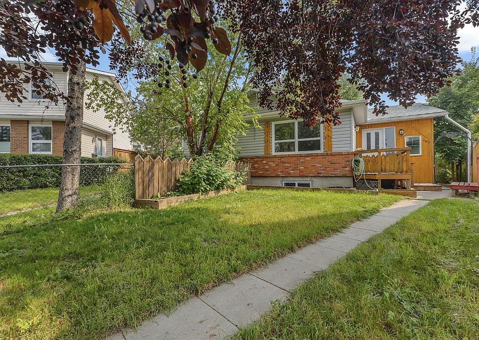 Your Home Sweet Home Awaits! This charming 930 sq.ft. semi-detached bungalow is full of character, move-in ready but still with room to buil equity! Ideally located on a quiet street within walking distance to schools, shopping, parks, and transit, this home is perfect for first-time buyers, downsizers, or savvy investors. Enjoy the beautifully landscaped, fenced lot with mature trees, perennials, and a welcoming front verandah—perfect for morning coffee or relaxing evenings. Step inside to discover a bright living room, a spacious dining area, and a functional kitchen with black appliances. The main floor also features a renovated 4-piece bathroom, a generous secondary bedroom, and a huge 23’ x 11’ primary retreat with direct access to the large back deck. The lower level provides incredible flexibility with 2 additional bedrooms, a family room, and laundry/storage space—ideal for guests, a home office, or a growing family. Upgrades include newer flooring, updated main bath, newer furnace, central A/C, and basement windows. The private, pie-shaped lot offers plenty of opportunity for some sweat equity and room for a future double or triple garage. There are still some things that could be done now or later. New upper windows, needs a paint job and possibly some new carpet. We are trying to straight forward with you so that you know what to expect. With Fish Creek Park and the city’s extensive pathway system nearby, plus easy access to plenty of amenities—this home truly combines comfort, convenience, and community. Do some work and reap the benifit.