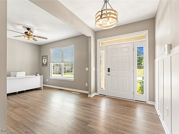 You’ll love this like-new colonial in the Woodridge Place neighborhood of newer homes, designed with a thoughtful layout that works well for families and for entertaining. A front entry with transom windows opens to a flexible space that can be used as a home office or den. Wainscot paneling and LVP flooring continue into the great room, where a vaulted ceiling and floor-to-ceiling stone fireplace connect with the eat-in kitchen featuring a center island with counter seating, white appliances, and a spacious walk-in pantry. A patio door extends the living space outside to a balcony deck, perfect for outdoor meals. The desirable main floor master bedroom includes a walk-in closet and private bath with a double sink vanity. Down the hall, you’ll find a guest bath and laundry room on the way to the attached two car garage. Upstairs, a loft provides extra space for a toy room or study area, along with two bedrooms that each have walk-in closets and share a full bath with an extended vanity. The finished lower level adds a rec room for movies and games plus walkout access to a covered deck and patio in the fully fenced backyard. Set on a prime lot that backs to wetlands yet close to shops, dining, and I-76, this is a special find you won’t want to miss. Come take a look and see it for yourself.