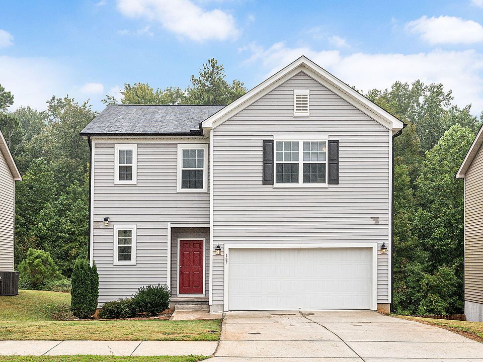 Welcome to this beautifully maintained 3-bedroom, 2.5-bath home with a versatile finished basement, located in the heart of Clayton! The bright and open-concept main level features a stylish eat-in kitchen equipped with a center island, modern appliances, under-cabinet lighting, and a spacious walk-in pantry for ample storage. The adjacent living room is perfect for entertaining, relaxing, or hosting game nights, and the main floor also includes a convenient half bath, a welcoming foyer, and direct access to the attached 2-car garage. Upstairs, you'll find a well-laid-out bedroom level that includes a generous primary suite with a huge walk-in closet and an ensuite bath featuring dual vanities and a walk-in shower. Two additional bedrooms offer ample space and storage, while a flexible loft area is perfect for a second living space, home office, or playroom. A full guest bathroom and an upstairs laundry room add to the home's everyday convenience. The walk-out basement level expands your living space with a 29-foot-wide room that can serve as a media room (complete with a pull-down screen), play area, gym, or guest retreat. From here, step directly onto a covered patio that opens into a fully fenced backyard—ideal for outdoor entertaining or relaxing evenings. The basement also includes a large unfinished storage room that can be used as-is or converted into a workshop, hobby room, or additional finished space. Enjoy outdoor living with a covered patio and an extended concrete area—perfect for grilling, dining, or gathering around a fire pit. The private backyard backs directly to neighborhood walking trails, and the home is within walking distance to a community playground and gazebo.