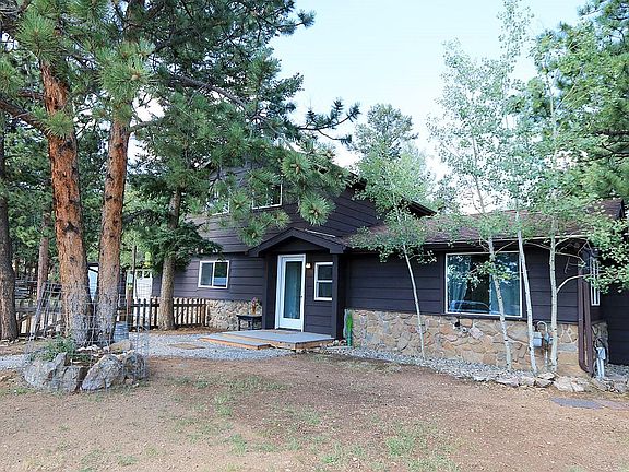 End of cul-de-sac privacy with fenced, usable land and outbuildings. 2 bedroom house has been recently updated with new siding, newer roofing shingles, updated designer kitchen. Vaulted T&G ceiling at living room. The property has a proprietary high speed pole for Rise Broadband and Dish Network dishes, with buried conduit. 4 G AT&T or T Mobil. This property is in a "banana belt" with less snow than Conifer, per Seller.