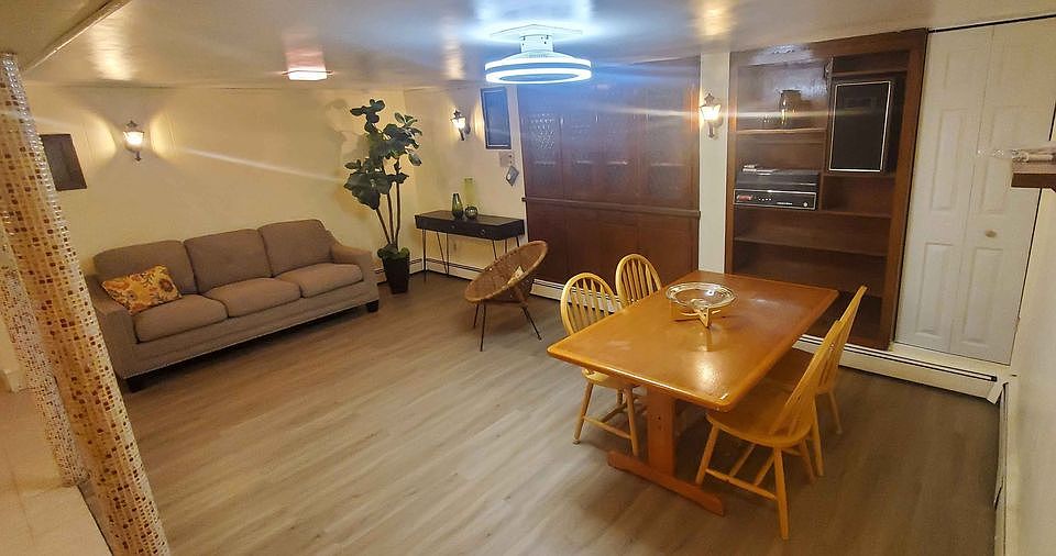 This is a furnished in-law suite located on the lower level of a family house. It has an independent entrance and full size kitchen and bathroom. It has a huge bedroom with a big closet, and an additional small closet with shelves. The living room and dining area have an open concept that connects to the kitchen. The outside of the house is well lit, and it has cameras around the perimeter. Located on a nice urban neighborhood, walking distance to a few bus routes. Ideal for one person. Please complete an application if you would like to see the unit, do not show up at the house unannounced, we will not show the unit to unscheduled candidates. The owner will pay for a parking permit for up to one car registered under the renters name, this will allow the renter to park on the street in front of the house; off-street parking may be negotiable for an additional cost. Heating and electricity is covered by the owner; renter is responsible to pay for additional services like wi-fi and cable, for example. The apartment is furnished, no big pieces of furniture, for example beds, dining tables, and couches, are allowed to be moved in. Small dogs (up to 18 pounds) and cats allowed for an additional fee. This is a quiet house, renters are expected to follow good neighbor etiquette, no loud music or noises, no parties or big groups of visitors will be allowed. No smokers. Month to Month Rental Agreement. Strict policy on late rent payments; $50 per day of late rent will be charged, renter will be asked to move out promptly if late rent payments become an issue.