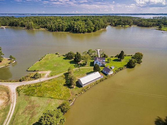 Almost two acres in this private waterfront peninsula with sparkling water on 3 sides. This charming 1910 Farmhouse property has a lovely ambling lawn, 1125 feet of water frontage and its own boat ramp. Pier with deep water on White House Creek off the Corrotoman River. Updated kitchen and bathrooms, and newer flooring in several rooms. Newer HVAC. Two sheds with concrete floors, one 25'x60' with floored storage above and the second shed, 24'x23'. Lots of space in both sheds that is available to repurpose. Septic system is for 4-bedrooms. Home currently has 3 bedrooms. This is a beautiful spot, with enchanting scenic views. Sit on the screen porch and enjoy.
