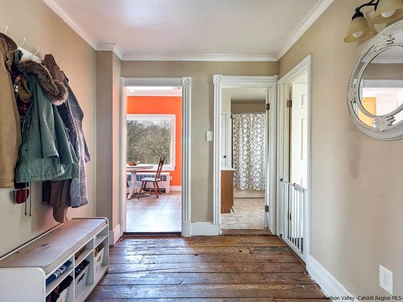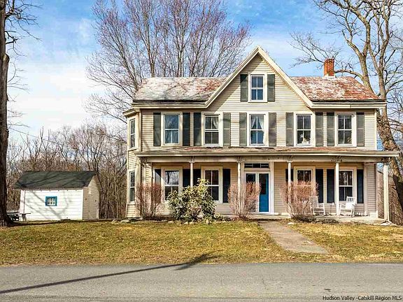 This 1888 home is perched above the Wallkill River and is located just minutes to village amenities in Gardiner, Wallkill, and Walden or all sorts of outdoor activities in the Shawangunk mountains. There are loads of historic details to enjoy from the bay windows and ornate moldings to the original hardwood flooring - as well as a layout that works for today's lifestyle, including an open dining/living room, a full bath and two bedrooms on the ground floor, a massive walk-in closet for the master, and a large eat-in kitchen with incredible views of the river. A two-car garage and shed add additional storage space and the shape of the lot means the home is surrounded on three sides by woods or the river, lovely in every season, and the quiet country road begs completes the setting. The home is not in a flood plain, so you can fully enjoy the views and sounds of the river without any of the compromises that waterfront living can sometimes bring!