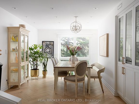 Situated in the heart of midtown, in an exclusive boutique 7-unit complex, this townhouse has been meticulously renovated from top to bottom.A fu ll renovation to the studs ensured every element was rebuilt with intention and care. White oak herringbone flooring flows throughout.The kitchen is both stunning and functional true culinary showpiece. Italian porcelain countertops and backsplash are paired with GE Cafe appliances, a convection cooktop, panelled dishwasher, soft-close cabinetry with glass inserts, and abundant smart storage. A dedicated coffee bar, filtered water system, and instant hot water tap add both luxury and convenience.Upstairs, the sun-filled primary suite overlooks the park. The spa-like ensuite features marble flooring, designer wallpaper, storage mirrors, and distinctive lighting. The second bedroom has been transformed into a custom walk-in closet and dressing room with shoe storage and designer cabinetry, though it can easily be returned to a bedroom if desired. The lower level offers heated floors, a living area anchored by a custom Italian porcelain fireplace with bespoke mantle, and a private third bedroom perfect for guests. New washer and dryer, laundry sink with storage, Zellige tile backsplash, and a custom drapery system.Outdoor living is exceptional, with three private spaces: a rooftop deck with treetop views, a primary bedroom balcony, and a backyard terrace for dining or entertaining. The home also includes an oversized indoor secure parking space and a large private storage room are conveniences in midtown living.direct relationship to Sherwood Park, one of Toronto's most cherished green spaces. With winding trails, an off-leash dog park, and a canopy of trees that transform with the seasons, it offers an ever-changing natural backdrop. The private grounds feature lush gardens and an outdoor pool, while the well-managed building is steps from the citys best restaurants, shops, cafes, and transit.