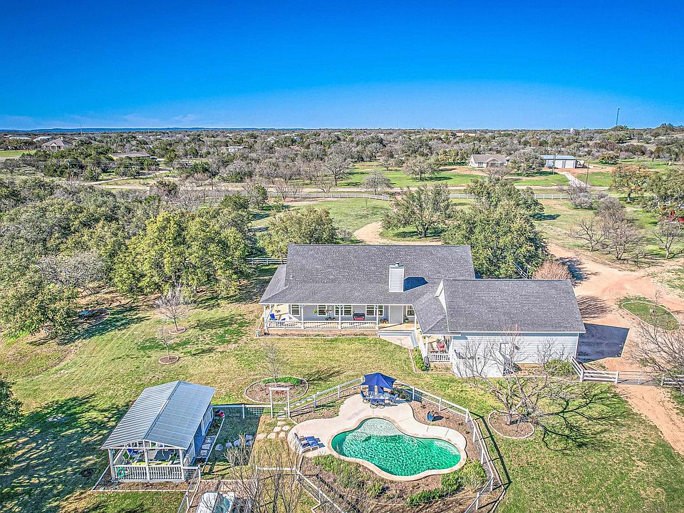 Welcome to your dream oasis nestled among the whispering trees and sprawling landscapes inside the ag-exempt, gated Lehne Ranch community. The main house has 3 bedrooms and 2 bathrooms, boasting an open and airy kitchen, living room, and dining room. On the back of the detached 2 car garage you will find a 312 sq. ft. one bedroom mother-in-law suite/office with a full bath, electric fireplace and murphy bed. This home is perfect for entertaining, hosting guests, or a cozy night in. Step outside onto the expansive wrap-around porches where “porch sittin” can become your new hobby while sipping your morning coffee. The backyard has a spacious gazebo, accompanying the in-ground pool which promises endless summer fun and relaxation. Slip into the stand alone hot tub and let your worries melt away beneath the starlit sky. But wait, there’s more! For the adventurers and hobbyists, the expansive 8.67 acres hold a hidden gem: a spacious 20ft by 40ft barn, tall enough to store your RV with 50 amp service and water. The property also contains 2 wet weather ponds, a fire pit area perfect for roasting s’mores, and a garden with 3 planting beds. Escape the hustle and bustle and embrace the tranquility of country living, all while being just a stone’s throw away from modern conveniences. This is more than a home; it's a sanctuary waiting to welcome you! Don’t miss your chance to make this slice of paradise yours!
