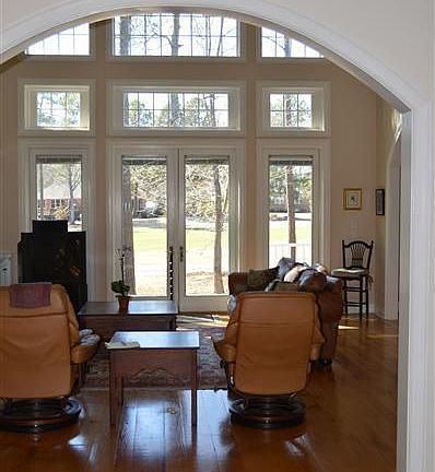Nestled on a perfectly beautiful lot, this low country, custom designed home maximizes the views! Great curb appeal as you drive up with a welcoming front porch, magnificent views as you step inside with upgrades galore! Antique wide plank hardwood floors and arched doorways greet you. A kitchen designed for Betty Crocker features Wolf and Subzero appliances, gas cooktop, double ovens, double drawer dishwasher, custom lighting and more! The spacious great room with its wall of windows and custom built in cabinets is open and yet cozy and the design flows so perfectly for entertaining! First floor master suite has 2 large walk in closets and a bathroom with shower body sprays, rain showerhead, large tub with soaker bubbles, double sinks and vanity seating area. 2 bdrms up with private baths offer your guests their own quiet oasis. Lg unfinished space is perfect for many future expansions. Tons of storage or finish as you wish. Great home, great price! Potential short sale. NEEDS WORK!