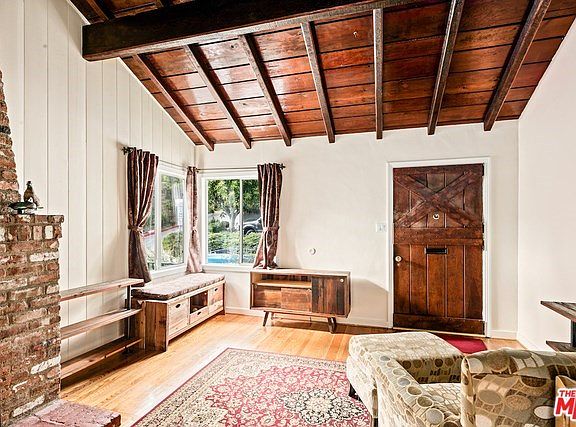 Beautiful 1947 Traditional located in the Verdugo Woodlands. Set in a quiet canyon close to hiking trails, Montrose shopping & restrnts, min from Dwntwn Glendale, & popular Glorietta Park. Admire the 12' high exposed woodbeamed ceilings; open LR & dining area centered around floor-to-ceiling cabin-like fireplace. Master BR w/high pitched ceilings, walk-in closet & 2 bright windows. 2nd BR looks onto bckyrd, sunlight streams in. Bright & cheery updated BA, attractive black quartz vanity & ample storage space. One neat design feature is the separate service porch entrance for quick access into kitchen; sun splashed kitchen freshly painted w/charming white tile cntertop & small seating area. Low maintenance/drought tolerant lndscping, fruit trees: lemon, orange, apricot & mandarin spread across a meandering path. Amenities include: HVAC, wd flring, updtd plumbing & sewer, dual-paned windows, 1-car garage, easy access to public transportation to DTLA. A perfect getaway to call home!