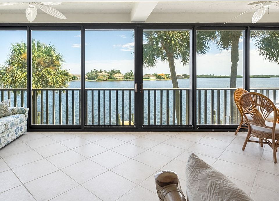 Expansive water views capture your attention the moment you enter this 2nd floor condo. The spacious "split-plan" provides privacy and impact-rated sliders on enclosed porch offer peace of mind. Wonderful southern exposure ensures plenty of natural light all day. Priced to provide opportunity for your personal updates. Spinnaker Point offers 1-car garage parking with extra storage, heated community pool and spa and access to the Moorings private beach with parking, tiki hut and BBQ grills.
