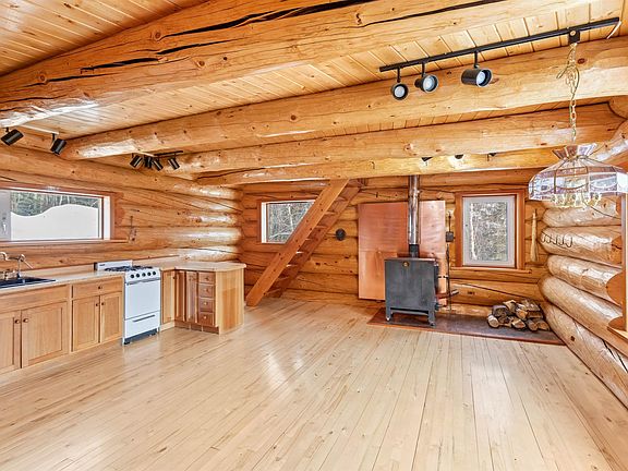 Beautifully scribed log "cabin" on 5 acres with incredible opportunity for overwhelming views. Custom but in 1991, full walkout basement with small holding tank for washer and kitchen sink that goes into grey water system. Property is ready for a septic system and bathroom to go in. Make sure you look at the aerial map to see the lot lines and trees that can come down to enhance the magical view! Also be sure to check the zoning if your buyers needed this to be a guest house while they built another home. So many possibilities! Non-conforming cabin financing or cash please