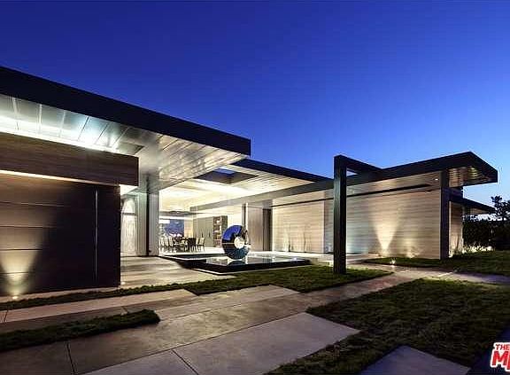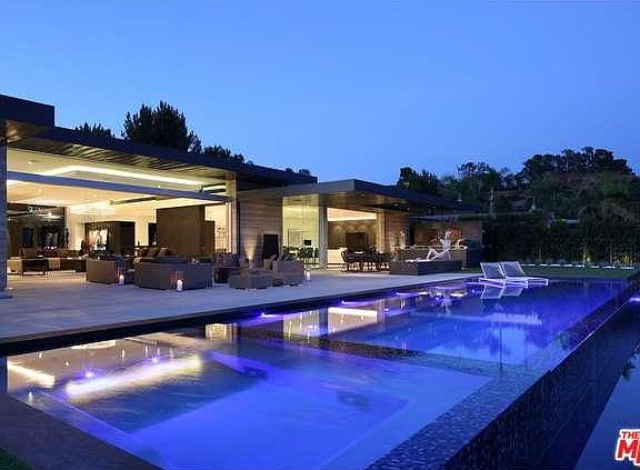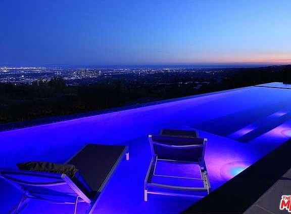 Private, gated and perched atop a promontory, this contemporary Trousdale estate offers panoramic views from downtown to the ocean. Sophisticated materials are used throughout, including white terrazzo floors, technology by Crestron, & Rheinzink garage doors. The family room with oak walls opens to stunning chef's kitchen with Miele appliances.~Leading from the living room is a luxurious screening room. 5 bedrooms and 6.5 bathrooms, with staff quarters, glass wine cellar and a gym/office. The master suite with rift oak paneling, linear fireplace and Fleetwood pocket doors boasts a gorgeous view. The powder room is stunning with back lighted Onyx and venetian walls. The master bathroom features his/her vanities and a steam shower. The resort like backyard features a tiled infinity edge pool & jacuzzi. The outdoor cooking area has Viking appliances, linear fire feature, TVs, and seating area. One of a kind home.