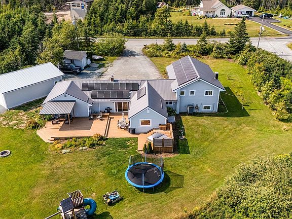 Welcome to 1870 Crowell Road in beautiful East Lawrencetown, where the perks of lakefront living meet thoughtful upgrades and energy efficiency! The bright and open-concept main level offers lake views from every room. The generous-sized, updated kitchen boasts granite countertops and plenty of storage, hardwood flooring throughout, a powder room combined with laundry, and a cozy wood-burning fireplace (insert installed in 2019). Two patio doors lead to your backyard oasis overlooking Porter’s Lake, plus a flex room with its own entry door. Upstairs offers three bedrooms, a spa-inspired main bath (renovated in 2023), a walk-in storage closet, and the primary suite includes a walk-in closet and ensuite. The lower level has a family room with space for a potential 4th bedroom and includes a Murphy bed. You’ll also find the sauna and utility space with storage. Comfort is year-round with a ducted heat pump (new compressor in 2025), ductless units in the main living area and office, and a pellet stove in the basement (installed in 2020). The 12.8kW solar panel system with 40 panels was added in 2018, along with a steel roof and backup generator with a 60 amp panel and 50 amp hookup. The home features a hybrid Rheem hot water heater (2022), water treatment system with UV filter and new jet pump (2025), and an upgraded kitchen sub-panel (2018). Appliances are included, most from 2015, with a new dishwasher in 2025. Windows and patio doors were replaced between 2016–2019. The property includes a new dock, hot tub and cover (2024), sauna, and bar nook. Garage space is abundant with a new 24x36 insulated garage (2025) with 10-foot ceilings, pellet stove, front and rear doors, and separate 200 amp service; plus a single detached garage and an attached garage with direct access to the home office—ideal for a home business! Located just minutes from Lawrencetown Beach, this lakefront gem offers comfort, flexibility, and an incredible East Coast lifestyle.