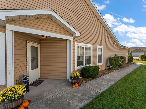 Step into this beautifully maintained half-duplex boasting over 1,500 sq. ft. of comfortable, open-concept living! This 3-bedroom, 2-bath home has been newly painted and features brand-new carpet--making it truly move-in ready. The modern kitchen is a chef's dream with a breakfast bar, pantry, and all appliances included, flowing seamlessly into a generous dining area perfect for family meals or entertaining. The oversized great room opens through patio doors to a low-maintenance deck, ideal for relaxing evenings or weekend get-togethers. Retreat to the private owner's suite featuring a double vanity, soothing garden tub, and separate shower. Additional highlights include a spacious laundry room with utility sink and cabinets, no HOA fees, Lake Michigan water, and the highly rated Crown Point School District. Move in and start enjoying the perfect blend of comfort, style, and convenience today!