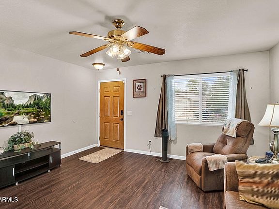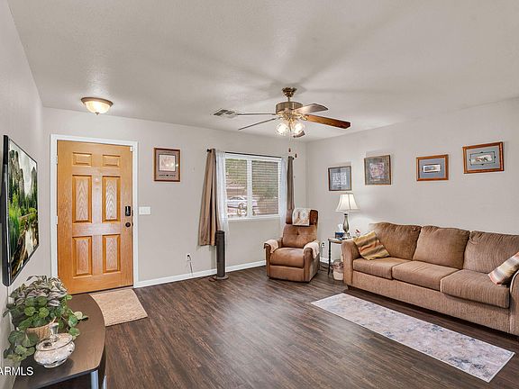 Move-In Ready & Impeccably Maintained! This beautifully updated home is perfect for buyers seeking a low-maintenance, lock-and-leave lifestyle. Nearly everything has been recently upgraded — including a newer A/C, blown-in attic insulation, modern appliances, new garage door, and fresh interior & exterior paint. Step inside to find luxury wood-look vinyl flooring throughout — NO carpet! The spacious living area features flat ceilings, while the oversized kitchen offers ample cabinet and counter space, ideal for everyday living and entertaining. The secondary bathroom boasts a fully tiled walk-in shower with glass door, and the primary suite features dual closets and a private bath with a relaxing garden tub/shower combo. Enjoy Arizona's beautiful weather on your covered patio, overlook overlooking a huge, easy-to-maintain backyard Located in a master-planned community offering multiple community pools, playgrounds, a golf course, and even an on-site restaurant.