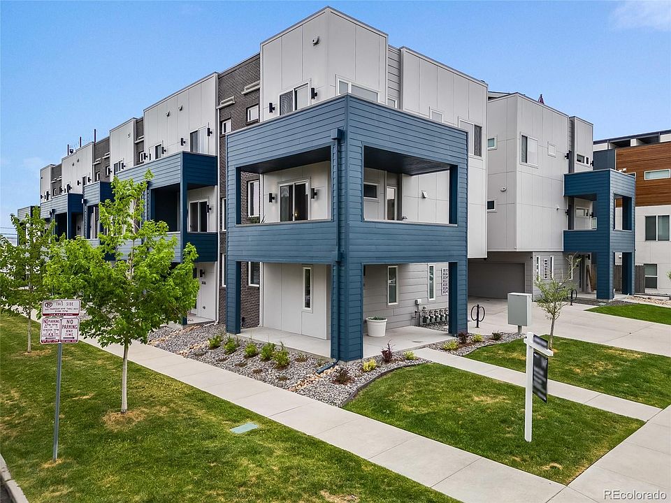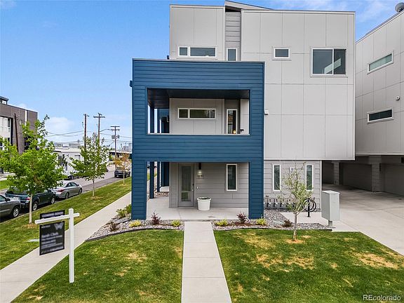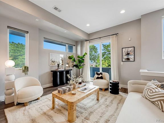Welcome home to this beautifully maintained, corner unit, townhome in Sloan's Lake! This home boasts two large bedrooms, one being a primary suite with its own private, wrap around porch and a total of three baths. Being a corner unit it also has THREE wrap-around patios and a rooftop deck- enjoy the outdoor space with no lawn maintenance! Enter through the main floor from the attached two-car garage or the front door into a well-lit foyer with a coat closet and space to remove your shoes. Upstairs, a bright an open floor plan that boasts the large living room, large kitchen to entertain and a dining room. A half bath is also on this floor for ease of use by your guests. Through the sliding glass doors, another wrap around patio that boasts views of Empower Field and the large lawn below that you are able to fence in if you desire. On the third level you'll find two spacious bedrooms, one of them being the primary with an attached ensuite and large walk-in closet. In the hallway, the laundry is thoughtfully placed for ease of use. Down the hall, the second bedroom with an additional full bath for guests. Up to the top floor, an entertainer's paradise with a large rooftop deck to entertain both by the fire and for dinner! The rooftop deck has ample space for all of your activities, room for a large sitting area for guests, a dining table, and even a hot tub if you so desire! Entertain your guests and enjoy 360 degree views of the front range, downtown and Empower Field! The string lights work on solar and are included with the sale, along with the fire pit. The house was recently landscaped and Buyer can put a partial fence around the front yard if they desire as they own part of the yard. Entire exterior of units painted this year! There is NO HOA, but a party wall agreement is in place and covers water, sewer, trash, landscaping, snow removal and the management fee for ~$130/month. Come check out this wonderful townhome and all of the outdoor space it has to offer!