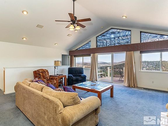 This beautiful custom home is nestled on a mountaintop with sweeping panoramic views of the Comstock hills, and is a quiet escape from the city, located in the highly desirable area of Virginia City Highlands, just 10 minutes from Virginia City, and 15 minutes from the city of Reno. 6 car garage, individual office w/Murphy bed, separated bedrooms w/access to the deck, 180 degree views & a ground level suite perfect for multi-generational living. This home has it all!!