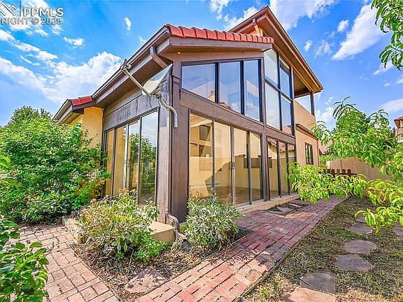Here’s your next great canvas nestled in the secure, gated enclave of La Posada del Sol. This light-filled home offers 2 bedrooms, 2 full baths, soaring vaulted ceilings, and a dedicated study with unique architectural details. Highlights include a bright kitchen with island cooktop and built-in desk, vaulted living room with fireplace, and a sun-filled breakfast nook. The enclosed back patio and spacious sunroom provide year-round enjoyment. The primary suite is a true retreat with walk-in closets, dual vanities, soaking tub, private deck, and its own fireplace and wet bar for cozy evenings. Natural hardwood floors pair with carpeted areas throughout, and a generous three-car attached garage offers excellent storage. Located on the west side of Colorado Springs, just minutes from Garden of the Gods, Rock Ledge Ranch, Old Colorado City, and Manitou Springs, with easy access to I-25 and downtown. Sold as is and ready for your updates, this is a rare opportunity to create a personalized retreat in a serene, convenient neighborhood. Gate is locked from 7 PM–7 AM; no showings during locked hours.