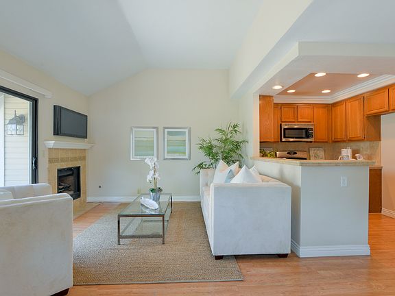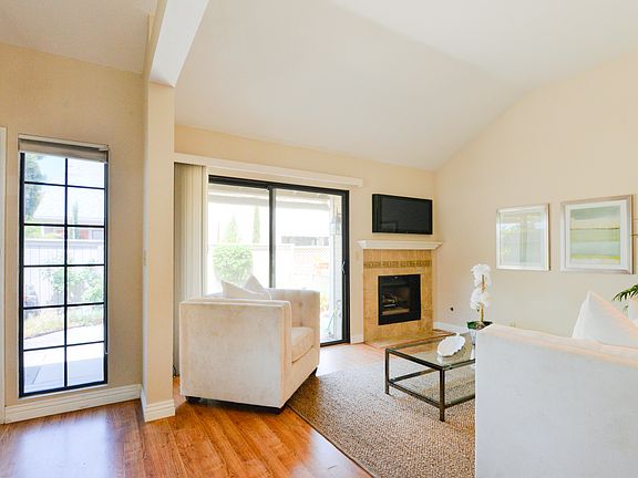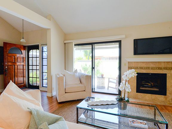 Gorgeous Anaheim townhome located in the highly desirable and gated community of Wellington Landing. Private end unit with spacious gated patio. Two car attached garage with direct access creates a convenient entry to your home. The kitchen has been upgraded with refinished cabinets, stainless steel appliances and designer tile counter tops and backsplash. In the living and dining areas natural light flows in through the sliding glass door and west-facing windows. A sea of attractive laminate flooring covers the downstairs areas and plush carpet lines the stairs and bedrooms. The fireplace is tastefully decorated with more designer tile to accentuate the stylish kitchen and complete the theme downstairs. There is also a guest bathroom conveniently located downstairs. Both bedrooms are located upstairs as well as two more bathrooms. The 2nd bedroom has an attached bathroom and bath. The master bedroom has a full en-suite bathroom. The heating and air conditioning system has been upgraded with new ducting. The HOA pays for water and trash and dont forget to visit the community pool and spa. This property is move-in ready. What are you waiting for?!