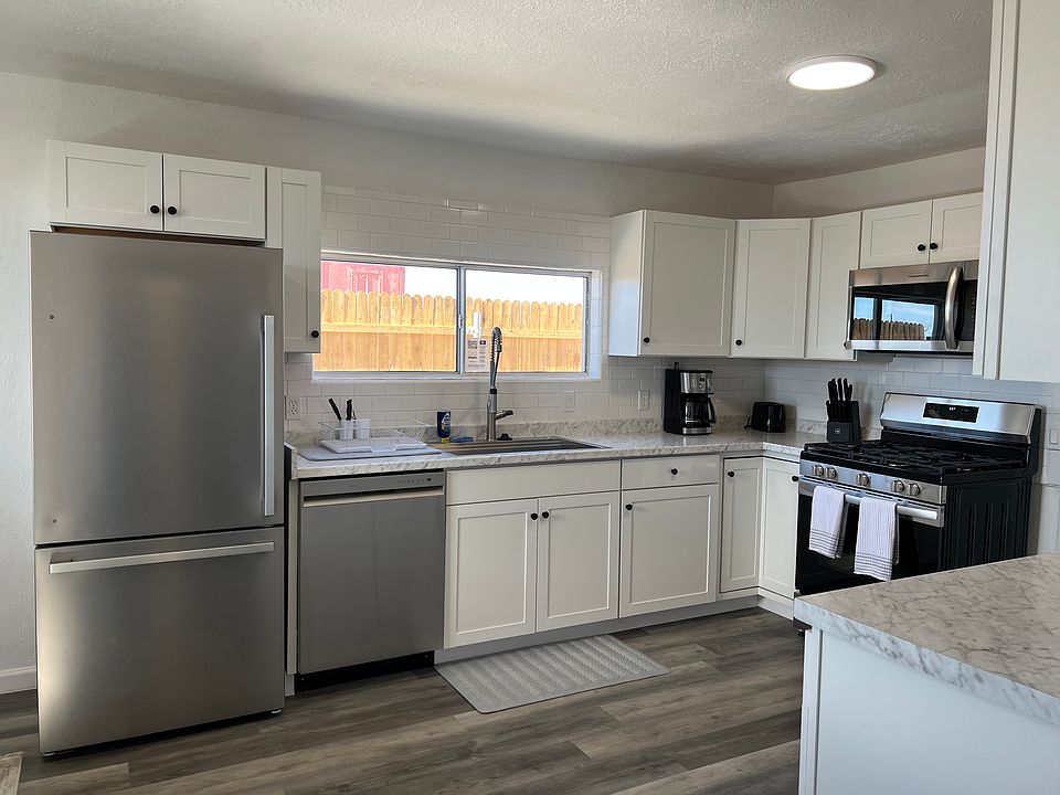 New kitchenLarge fenced yard areaNew bathroomWasher and dryerNew stainless appliances